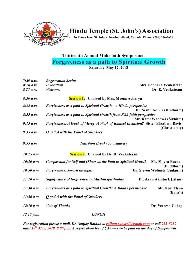 Havura President, Steven Wolinetz will be speaking at Hindu Temple in St. John’s on Saturday,May 12th at the Thirteenth Annual Multi-faith Symposium on Spirituality. The theme for this year’s symposium is “Forgiveness as Path to Spiritual Growth”. the public is invited to attend but you must pre- register. The symposium will begin at 8.20 a.m.…