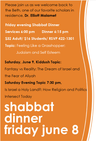 Please join us as we welcome back to the Beth one of our favourite scholars in residence: Dr. Elliott Malamet!