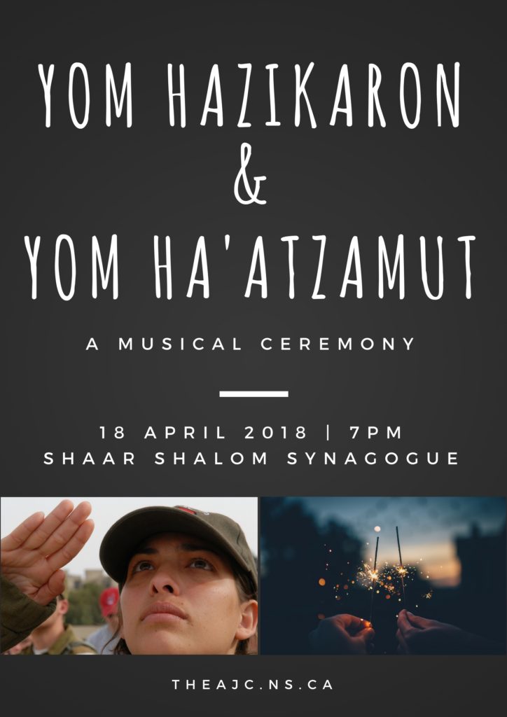 The AJC will be hosting a joint Yom HaZikaron/Yom Ha’atzmaut Ceremony this year on Wednesday, April 18th, 7pm at the Shaar Shalom synagogue. The ceremony will feature a number of musical acts and readings by members of the Halifax Jewish community, starting by recognizing the sombre tone of Yom HaZikaron and transitioning into the joyous…