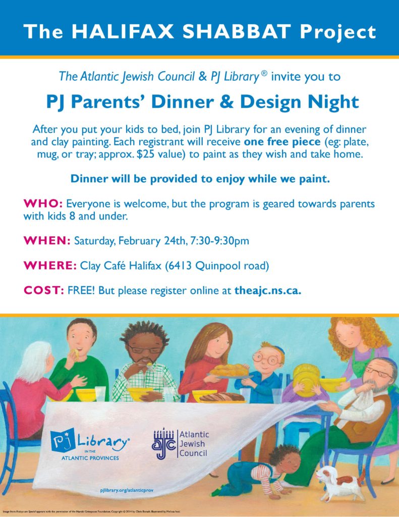 The AJC and PJ Library invite you to PJ Parents’ Dinner & Design Night! After you put your kids to bed, join PJ Library for an evening of dinner and clay painting. Each registrant will receive one free piece (e.g. plate, mug, or tray; approx. $25 value) to paint as they wish and take home. Dinner…