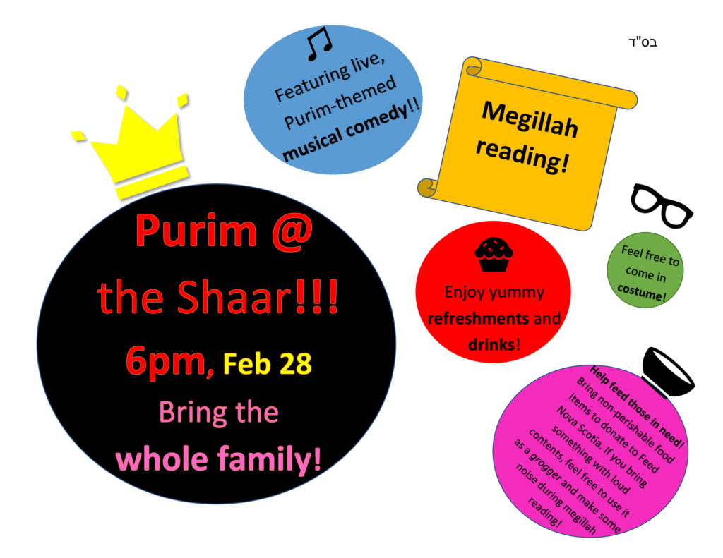 Join Jewish Community Havura of Newfoundland and Labrador’s Purim party on Saturday, March 03, 2018 5:30 pm info.havura@gmail.com for more information.