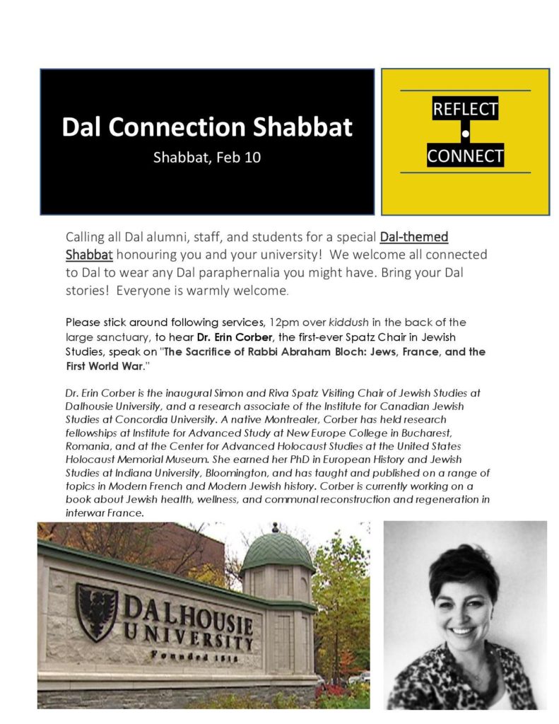On February 10, 2018 at 9:15am calling all Dal alumni, staff, and students for a special Dal-themed Shabbat honouring you and your university! We welcome all connected to Dal to wear any Dal paraphernalia you might have. Everyone is warmly welcome. Please also join us for our featuring speaker, following services at 12pm, Dalhousie’s first Spatz post-doctoral fellow…