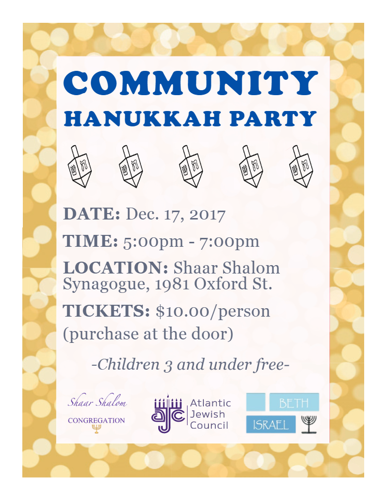The AJC, the Shaar, and the Beth are proud to host the 2017 Community Hanukkah Party on Dec. 17th at the Shaar!