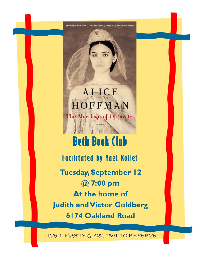 Beth Book Club Tuesday, September 12th 7:00 pm The House of Judith and Victor Goldberg 6174 Oakland Road