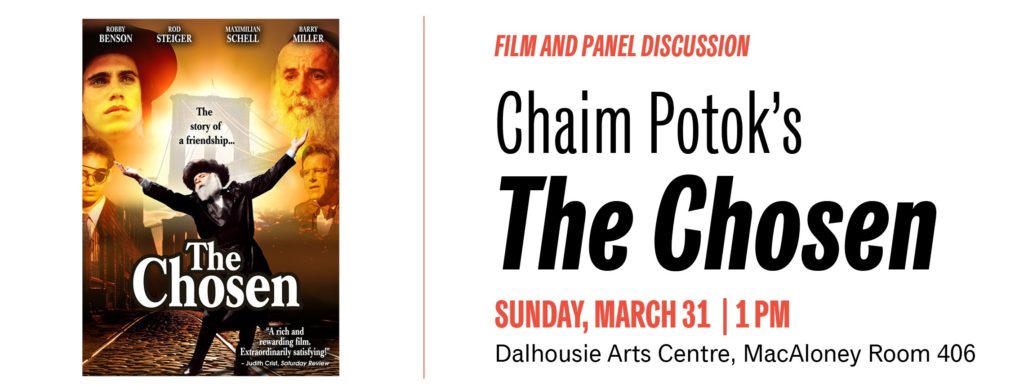 What: Film and Panel Discussion on The Chosen When: Sunday March 31 at 1PM Where: Dalhousie Arts Centre, MacAloney Room 406