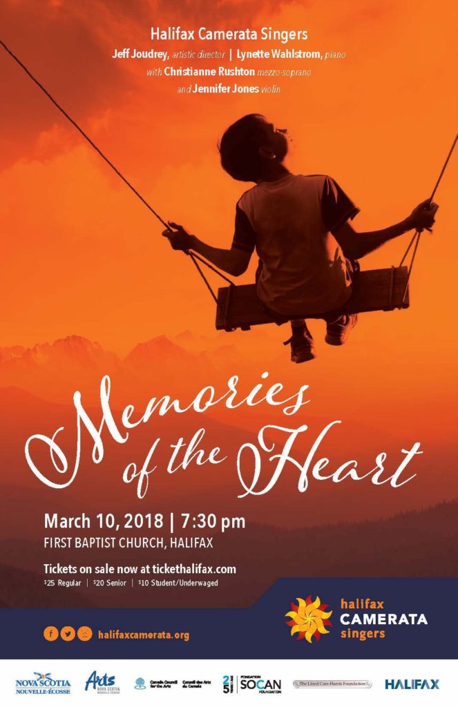 The Halifax Camerata Singers present “Memories of the Heart”, with Christianne Ruston (mezzo-soprano), Lynette Wahlstrom (piano) and Jennifer Jones (violin), including the gorgeous Five Hebrew Love Songs by Eric Whitacre!