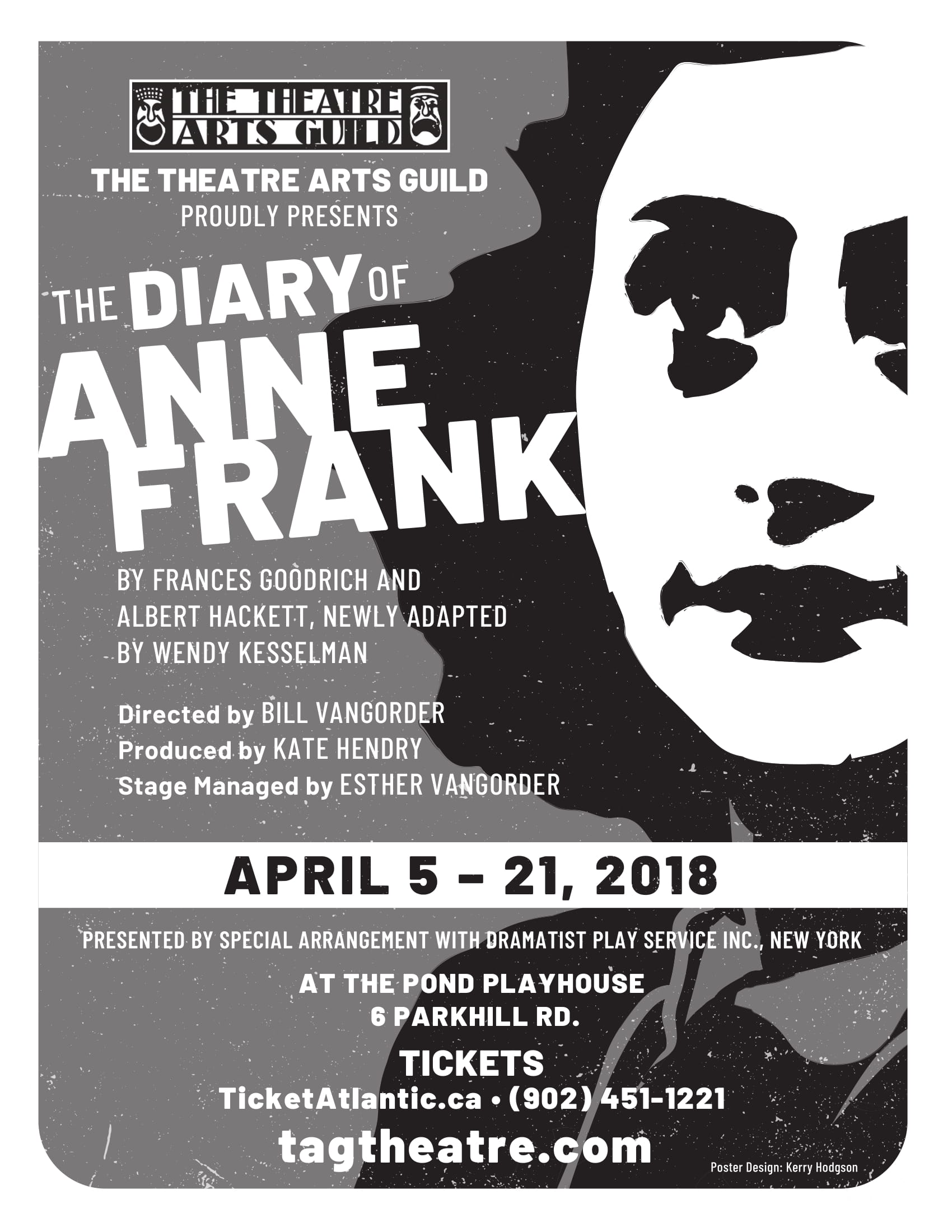 The theatre arts guild proudly presents The Diary of a nine frank by Frances Goodrich and Albert Hackett, newly adapted by Wendy Kesselman.